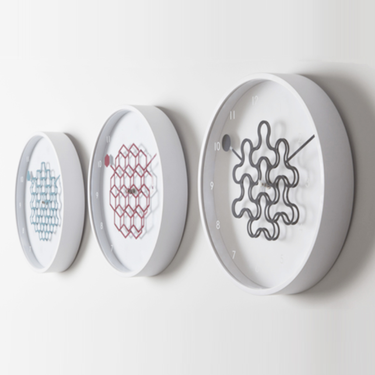 ■掛け時計 27cm タングルクロック 丸型 幾何学模様 壁掛け ハニーレッド ( アナログ 時計 壁掛け時計 インテリア 雑貨 スイープムーブメ