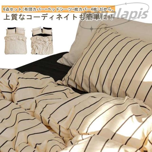 ■インスタ映え!布団カバーセット 掛ふとんカバー 6点セット ストライプ柄 コットン 優しい肌触り ベッドカバー 毛玉にならない 布団カバ