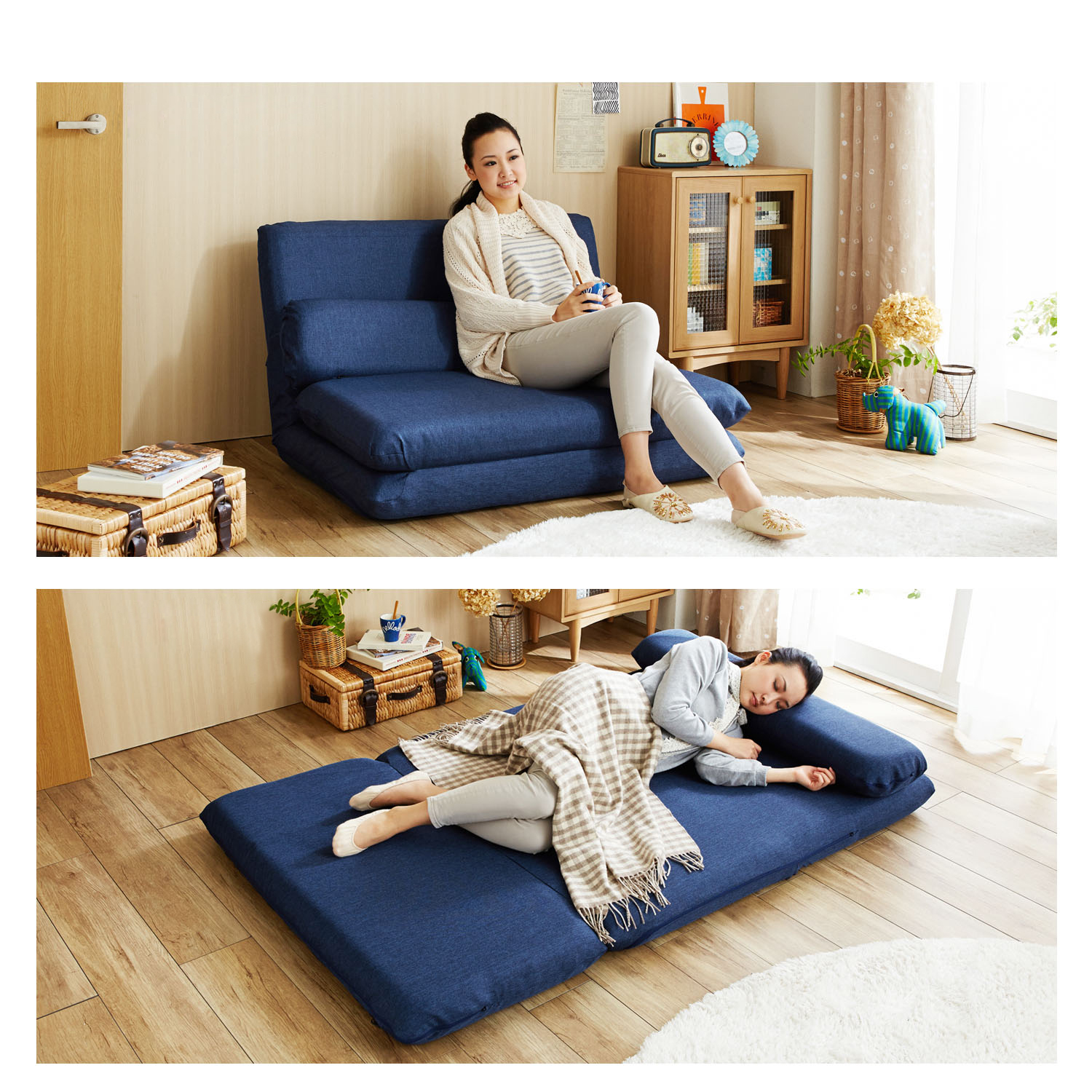 三つ折りマットレスに細長いクッションがくっついたようなユニークな形状折りたたみ方を変えることで、日常使いのソファーから脚をゆったり伸ばすカウチソファー、またベッドとしてなど何通りにも使えるリクライニングソファーベッドです背もたれ部は14段階に細かく調節OK細長いクッション部分はファスナーで簡単に付け外しでき、枕や腰クッション、オットマンなど様々な使い方に対応しますまたカバーリング仕様の張地はクリーニングでき、いつでも清潔に使えるのもうれしいポイントカラーは3色をご用意しました