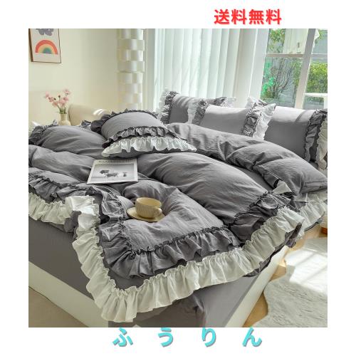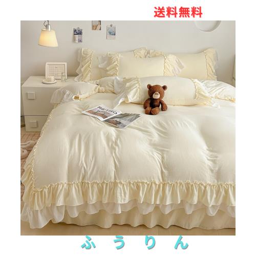 ■布団カバー 4点セット 2層フリル布団カバー 寝具カバー 洋式・和式兼用 ベッドカバー 掛け布団カバー ボックスシーツ 枕カバー シーツカ