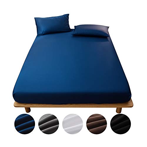 ■ボックスシーツ 吸水速乾 シーツ ベッドカバー マットレスカバー 抗菌・防臭 (セミダブル・120×200cm ネイビー)厚さ5 cm〜30 cmのマ