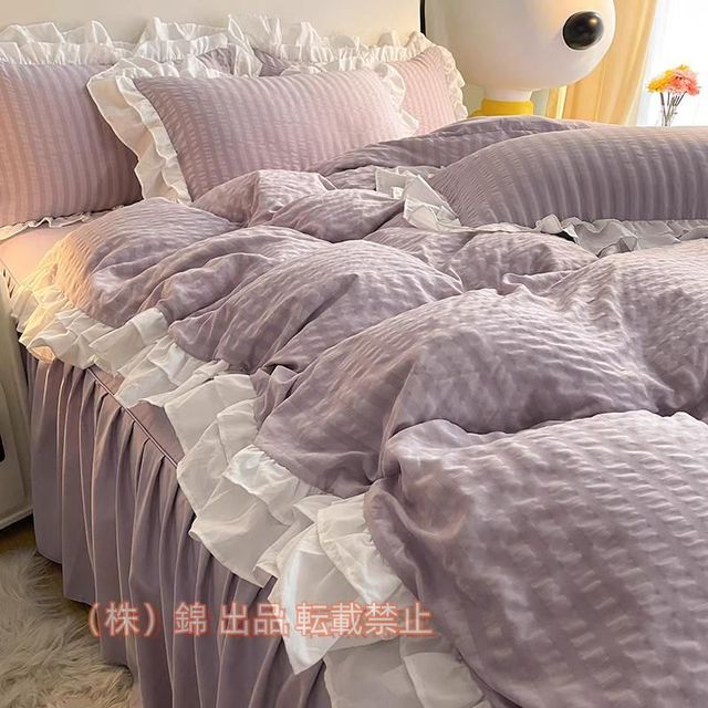 ■布団カバーセット フリル 可愛い 姫系 寝具カバー ベッドカバー フラットシーツ ボックスシーツ 洗える 株式会社錦 掛け布団カバー 韓国