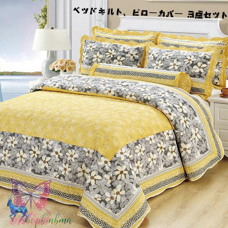 2021 ベッドカバー おしゃれ マルチカバー ベッドスプレッド ブランケット 枕カバー 3点セット 綿マルチカバー キルト 寝具 ベッドカバー ピロケース