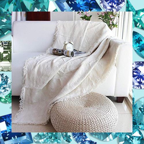 ■HomeFirst 北欧風 マルチカバー 長方形 おしゃれ ソファカバー 多機能 ブランケット ベッドカバー フリンジ付き 綿 2人掛け 3人掛け 無地