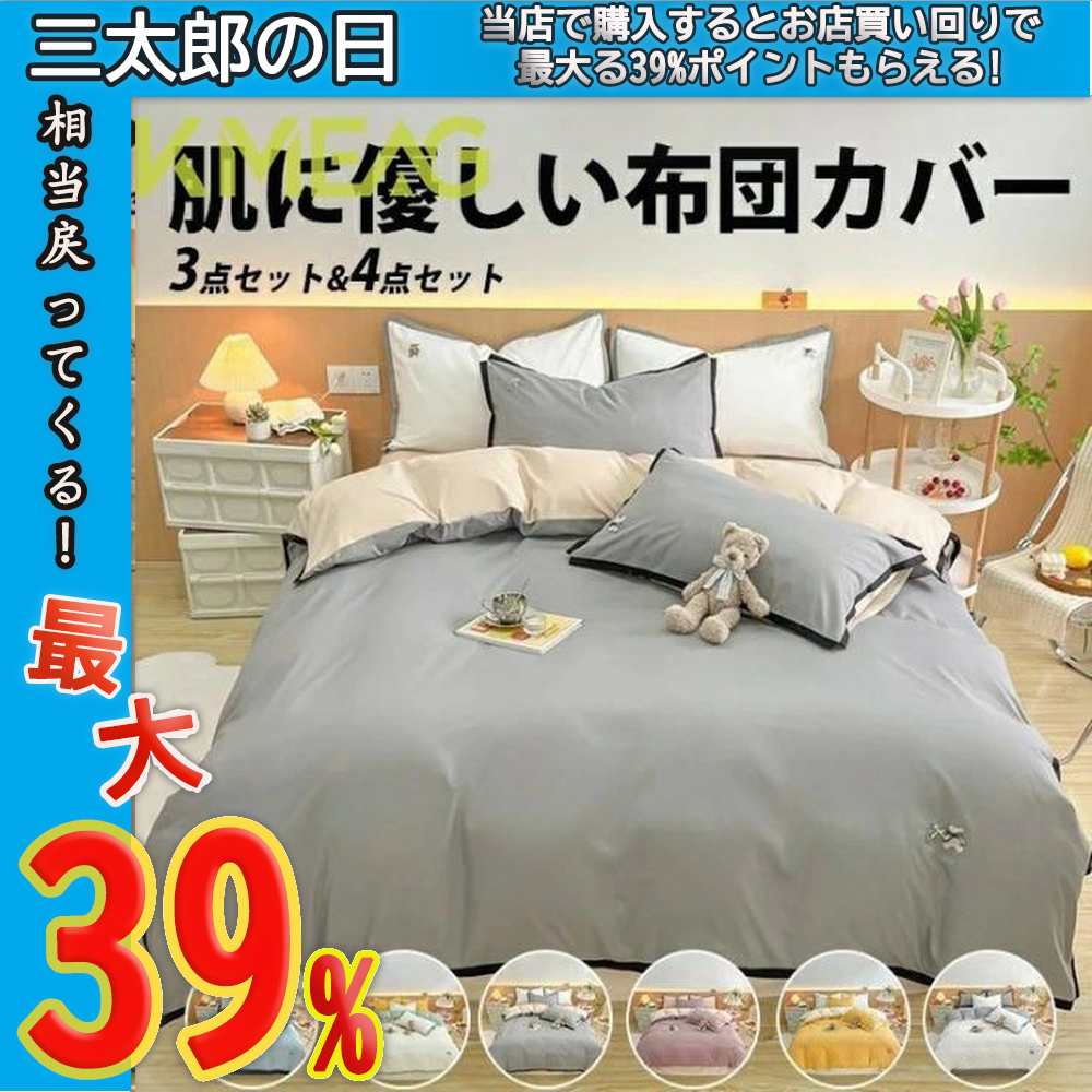 全7色 布団カバー ベッドカバー 布団カバー 掛けふとんカバー シングル3点セットセミダブル ダブル4点セット 無地布団カバー セット 掛カバー ふとんカバー 掛け布団カバー かけふとんかばー ボックスシーツ 枕カバー 肌に優しい おしゃれ 熊刺繍 北欧 新生活 引っ越し