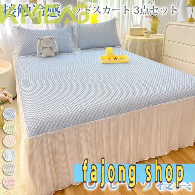 ■ベッドスカート 3点セット 洗える 接触冷感 ベッドカバー ひんやり フリル 切り替え マット 夏用 涼しい おしゃれ 冷たい シングル ひん