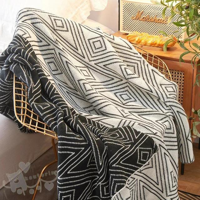 ■ブランケット110*150cm 両面 幾何学模様 大判 マルチカバー タオルケット アイボリー ニット 冷房対策 北欧風 ベッドカバー オールシ