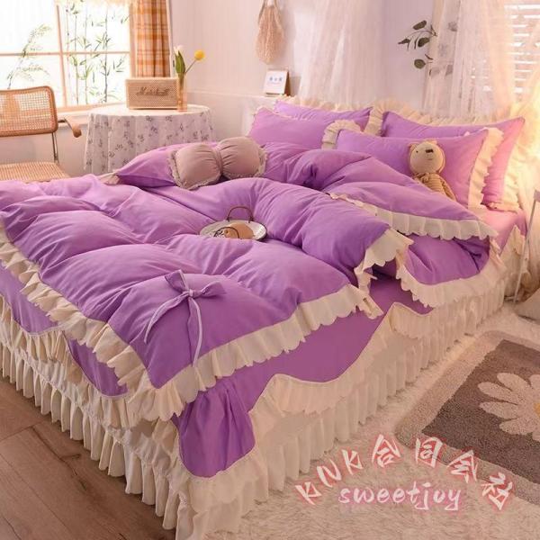 ■姫系 寝具カバー 布団カバー4点セット フリル リボン KNK(株) ベッドカバー フラットシーツ ベッドスカート シンプル かわいい 柔らかい