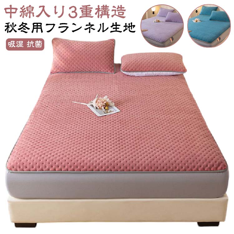■敷きパッド マットレスカバー シングル 秋冬用 フランネル セミダブル 発熱 ベッドカバー ダブル 敷きパッド一体型 中綿入り ベッドシー
