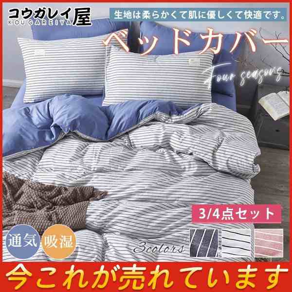 爆売中 ベッドカバー 布団カバー 寝具34セット ストライプ柄 おしゃれ 通気吸湿 四季通用 シングル セミダブル ダブル 和風 柔らかい 防ダニ