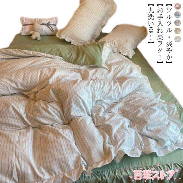 ■布団カバーセット フリル 寝具カバーセット 3点セット 4点セット ベッドカバー 可愛い 洗える 掛け布団カバー ボックスシーツ 枕カバー
