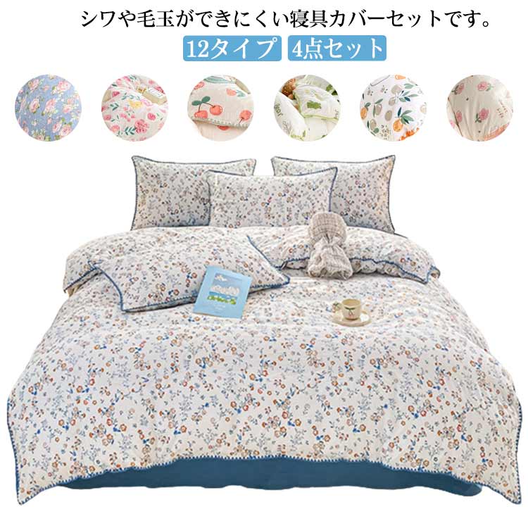 ■4点セット 枕カバー ベッドカバー 12タイプ 肌触り 春夏秋冬 花柄 柔らか フラットシーツ 寝具 丸洗いOK ダブル 可愛い 優しい 枕カバー