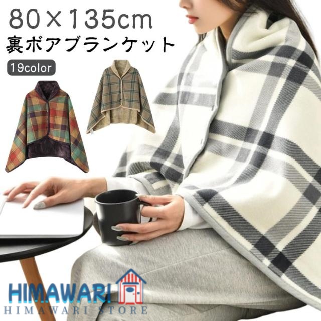 ■ブランケット 着る毛布 裏ボア 厚手 掛け毛布 ひざ掛け 肩掛け ポンチョ ケープ スナップボタン付 秋 冬 毛布 暖かい あったか 洗える 丸