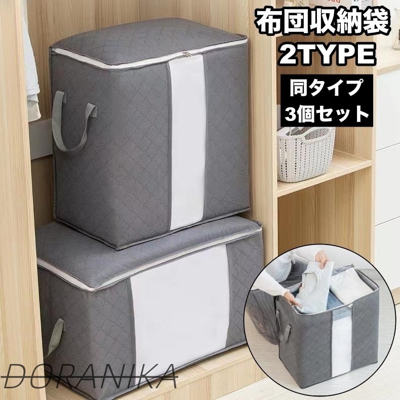 ■布団収納袋 3個セット 収納ケース クリア窓 持ち手付き コンパクト 羽毛布団 毛布 衣類 大容量 クローゼット 衣替え