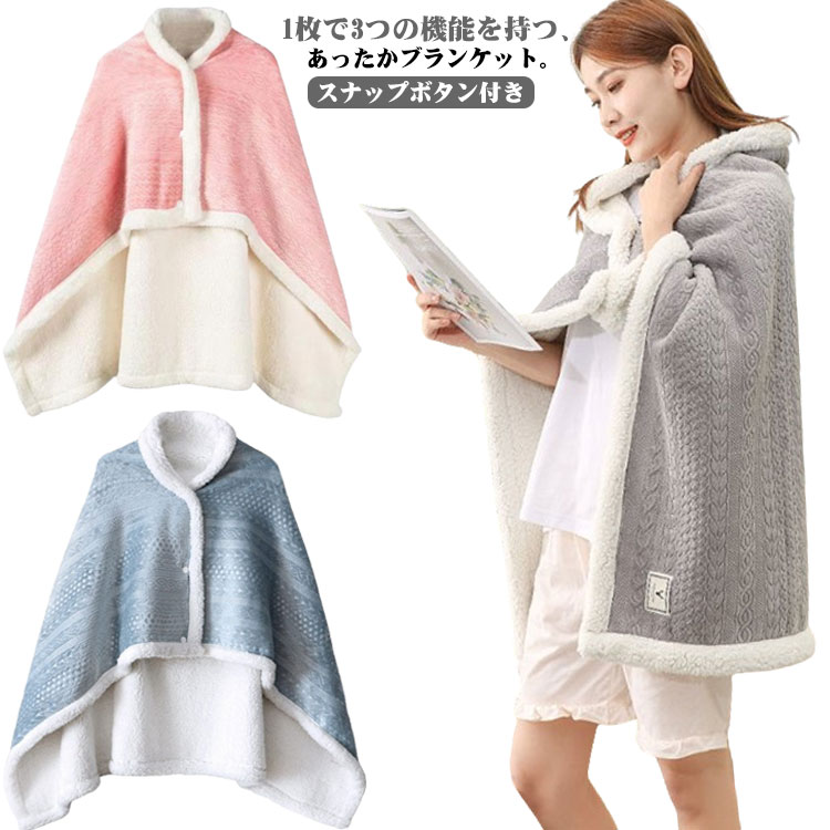 ポンチョ おしゃれ ブランケット ボタン付き ひざ掛け 肩掛け ブランケット 大人 あったか 着る毛布 毛布 ケープ 秋 冬 裏ボア 厚手 ふわふわ スナップボタン 大判 腰巻き 全19色 かわいい 軽い シンプル 暖かい 羽織り 洗える 防寒