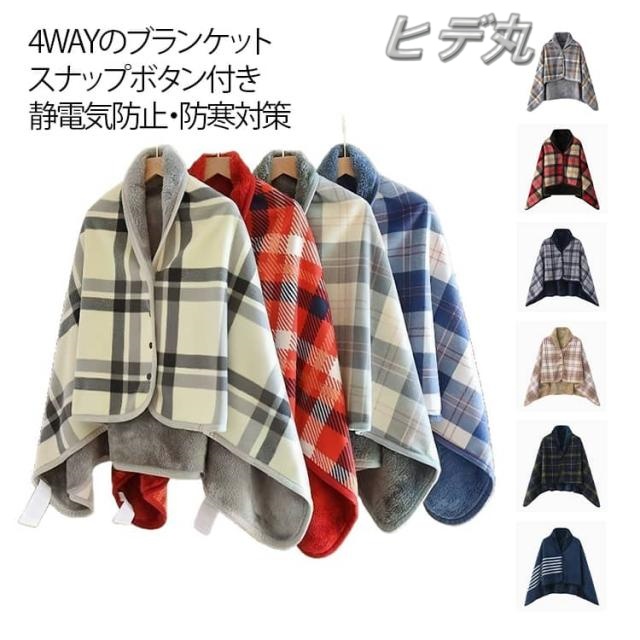 ブランケット 毛布 掛け毛布 肩掛け ボタン付き ポンチョ ひざ掛け 巻きスカート 30×80cm 140×100cm 大判 柔らかい 暖かい チェック 秋冬 防寒 保温 あったか 着る毛布 静電気防止 洗える 通年使用 送料無料