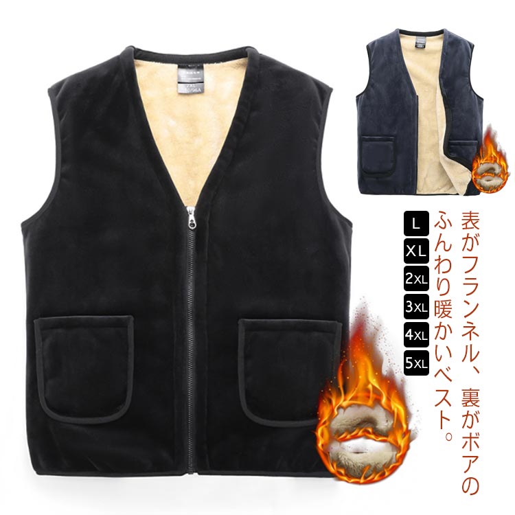 ■中綿ベスト 裏ボアベスト メンズ ジップアップ ベスト 大きいサイズ 毛布 フリース 暖かい ルームウェア 部屋着 前開き 袖なし ノースリ