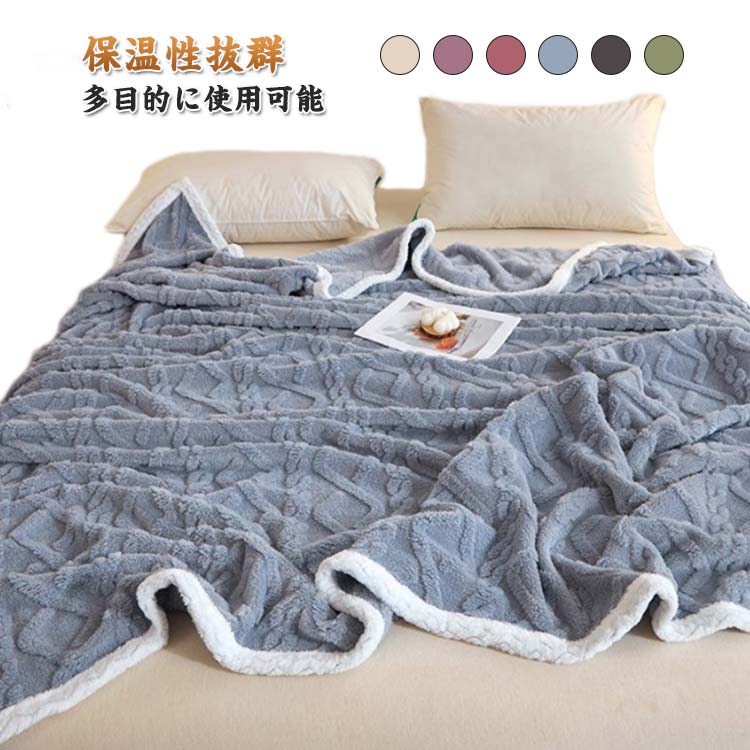 ◆商品名:maxer 【5色 3size】 無地 毛布 ひざ掛け 掛け毛布 ダブル 秋冬 発熱二枚合わせ 静電気防止加工 抗菌防臭 北欧風 フランネル シープ調 ボ