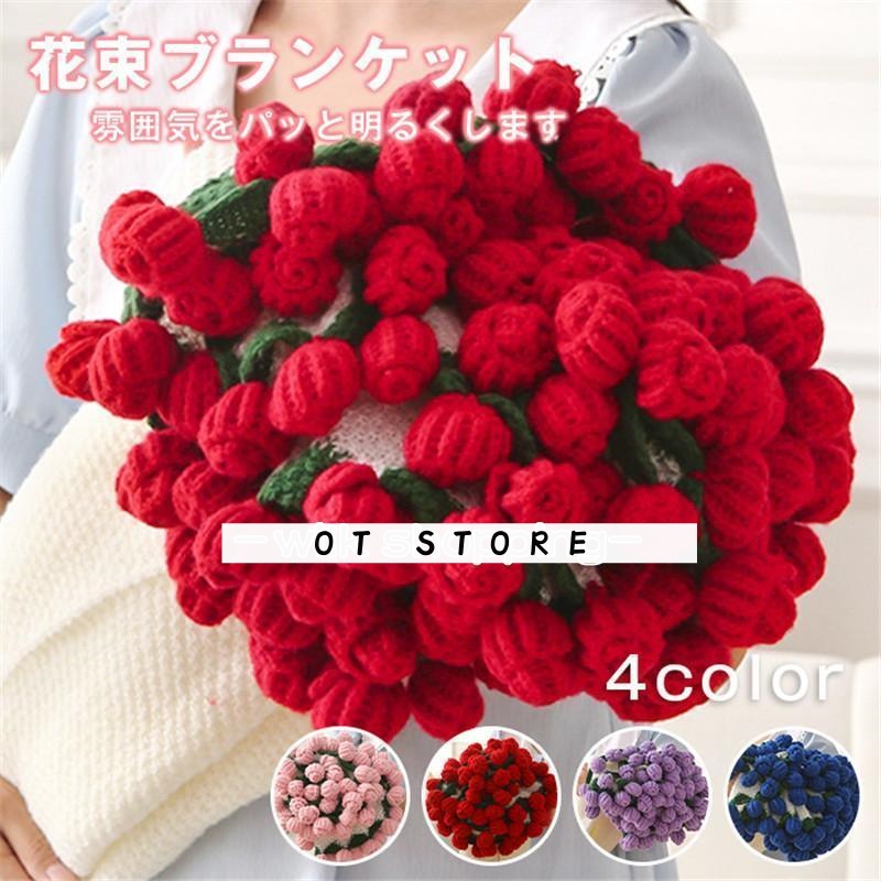 ■花束ブランケット ひざ掛け ブランケット 毛布 ポコポコ 掛け布団 掛ふとん ブーケブランケット フラワーブランケット 手編み花 咲く花