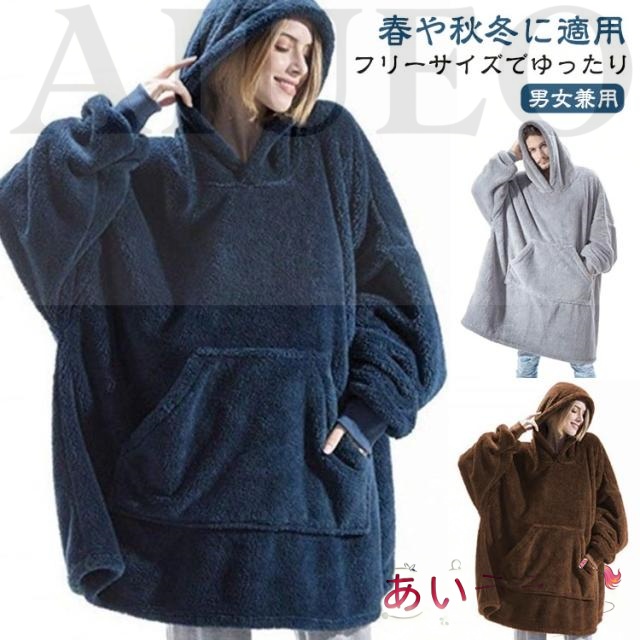 メンズ パジャマ レディース ボア付き ルームウェア ポンチョ 着る毛布 冬用 着る毛布 メンズ モコモコ フード レディース 毛布 かわいい メンズ 着るブランケット 暖かい 二層生地 ガウン 洗える 防寒 裏起毛シープボア 男女兼用 両面ベルベット