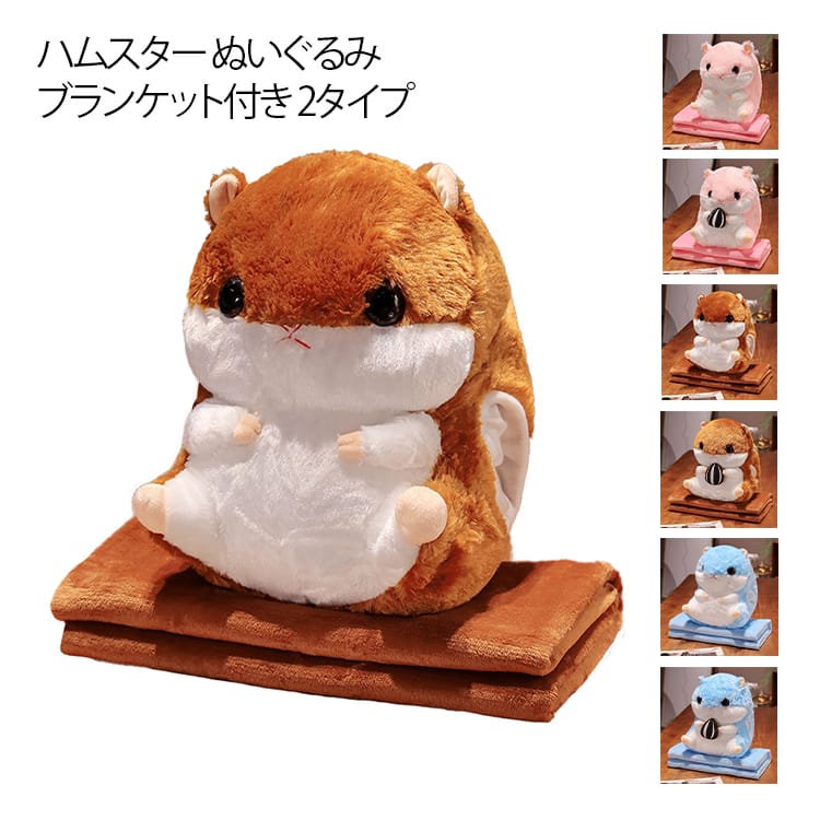 ■ブランケット付き 抱き枕 お昼寝 抱きクッション ぬいぐるみ トンネルポケット 枕 あったか ハムスター 腰当クッション ハムスター 毛布