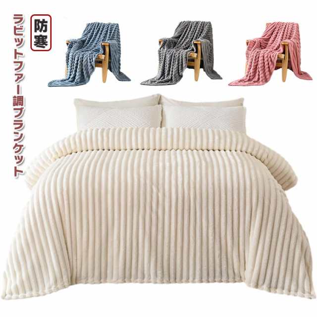 ■毛布 ブランケット ストライプ モコモコ ラビットファー調 洗える シングル セミダブル ダブル ふわとろ ふわふわ 厚手 おしゃれ 寝具 ソ