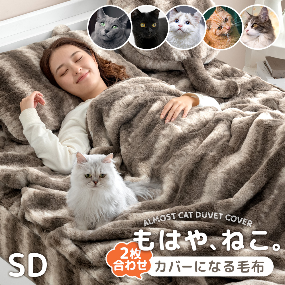 ■もはや、ねこ。 カバーになる 毛布 セミダブル 洗える 二枚合わせ 掛け布団 掛ふとん ブランケット 布団 毛布にもなる カバー 布団カバー