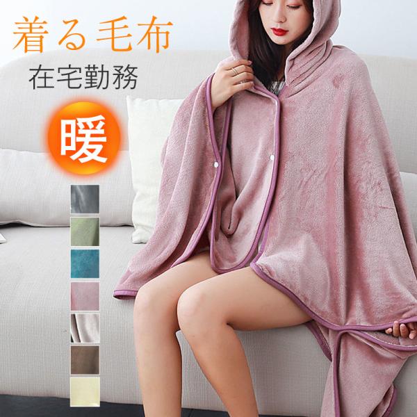 ■着る毛布 ルームウェア ロング 無地 フード付き 毛布 パジャマ ネグリジェ 部屋着 暖かい 防寒 保温 オフィス 在宅勤務 カジュアル おし