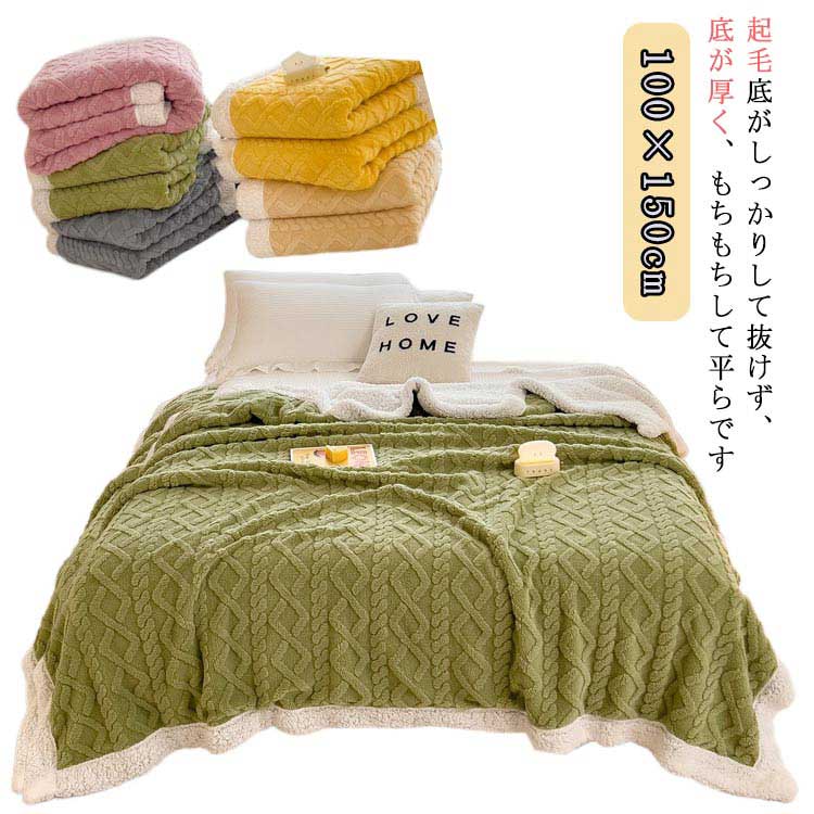 ◆商品名:maxer 【5色 3size】 無地 毛布 ひざ掛け 掛け毛布 ダブル 秋冬 発熱二枚合わせ 静電気防止加工 抗菌防臭 北欧風 フランネル シープ調 ボ