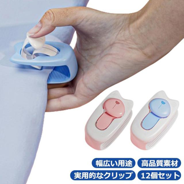 ■12個セット!布団クリップ 布団固定器 シーツクリップ 猫柄 かわいい キルトクリップ 針なし 掛け布団 毛布 ズレ 防止 防寒 クリップ ふ