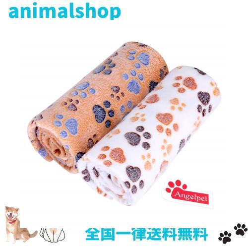 ■ペット用 ブランケット 毛布 犬猫 マット タオル ソフト 秋冬の防寒 保温 洗える サンゴフリース 可愛い肉球柄 Angelpet (L,2枚セット)