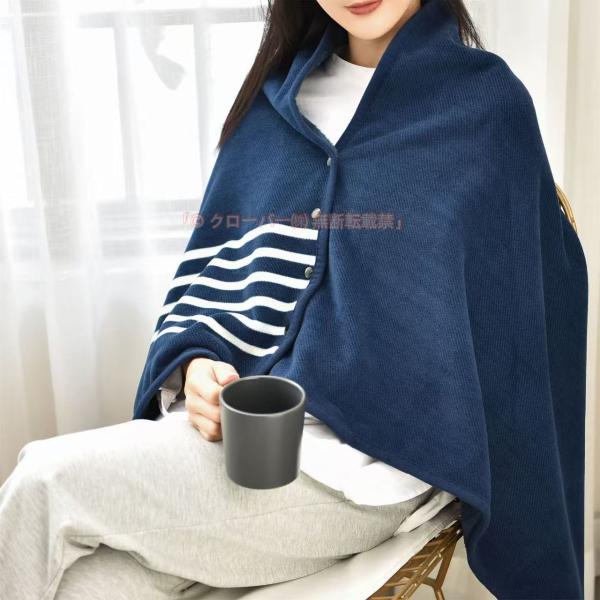 ■肩掛け ひざ掛け ブランケット 発熱 厚手 フランネル 多機能 クローバー株式会社 着る毛布 秋冬 巻きスカート ボタン付き 80x130cm 暖か