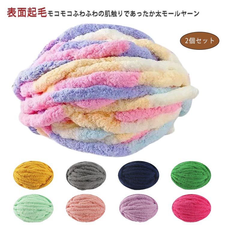 ■チャンキーニット 毛糸 チャンキーニット 色混ざり 段染め ヤーン ニット 2個セット 無地 チャンキーヤーン 手作り 可愛い ブランケット