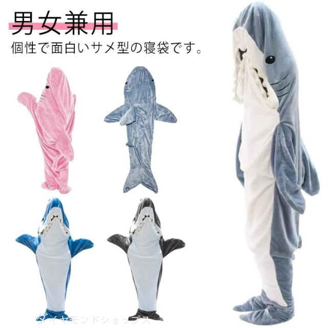 サメ寝袋 フランネル 着ぐるみ パジャマ 寝袋 サメ ブランケット サメ穿く毛布 着る毛布 冬 秋 ふわふわ 大人用 ルームウエア 部屋着 昼寝毛布 冷房対策 防寒 暖い アニマル 個性 男女兼用 ジュニア 子供