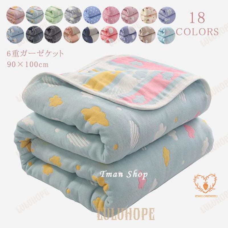 ■ガーゼケット 6重 ブランケット タオルケット コットン100%綿 お昼寝ケット 吸水 通気性 洗える キッズ 子ども 90×100 入園祝い 保育園