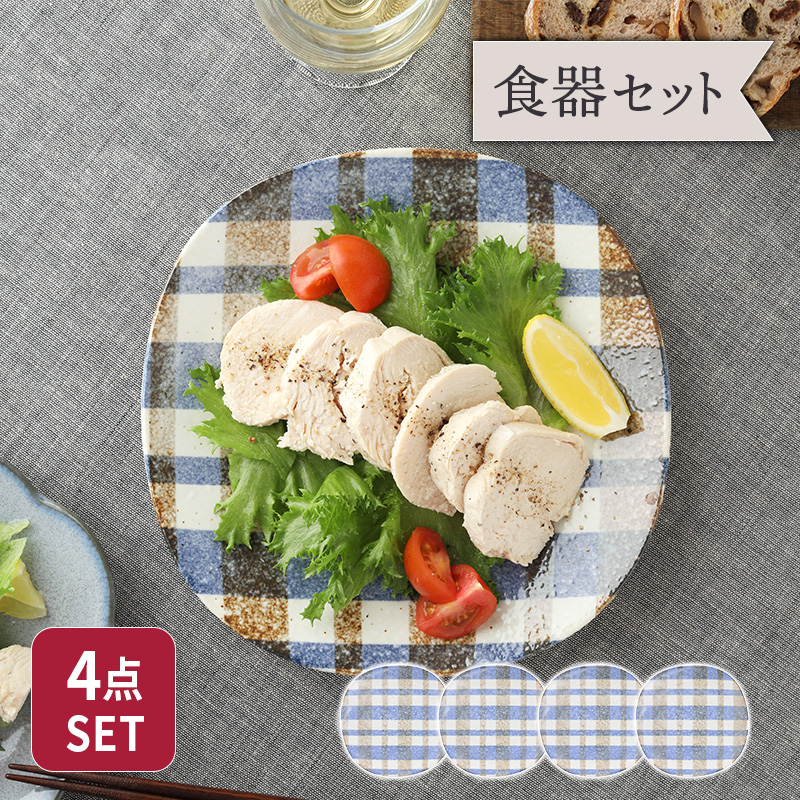 ■プレート 20.3cm 4枚セット ブランケット 丸角型 割引セット 送料無料 福袋 和食器 陶器 磁器 日本製 美濃焼 おしゃれ 和モダン シンプル