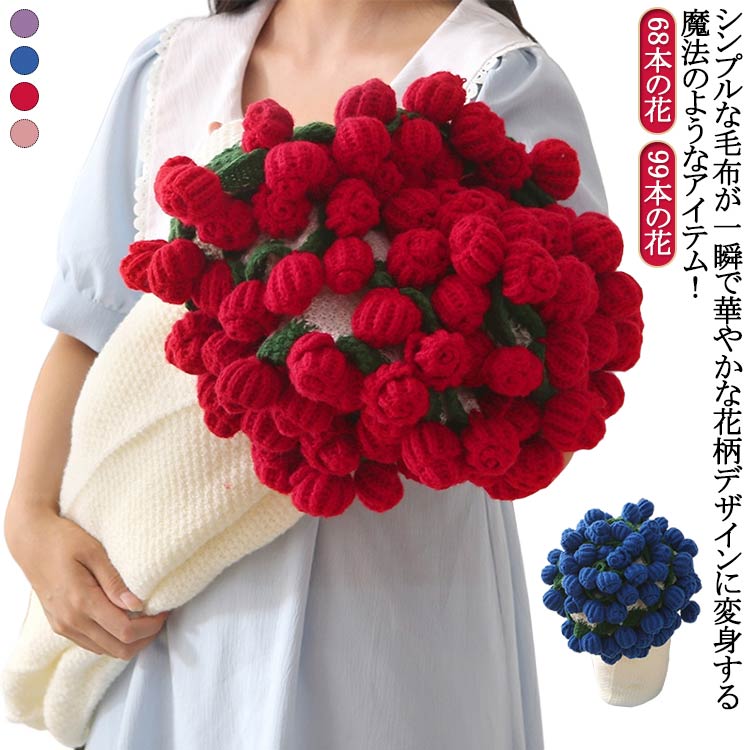 ■花束ブランケット 花束 完成品 花束ブランケット ブランケット マルチカバー マジックフラワーブランケット 花束 手編み花 クラフト 咲く