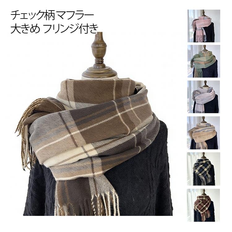 ■チェック柄 マフラー レディース フリンジ付き フェイクカシミヤ 防寒 ストール ロングマフラー 柔らかい 通勤 暖かい ブランケット チェ