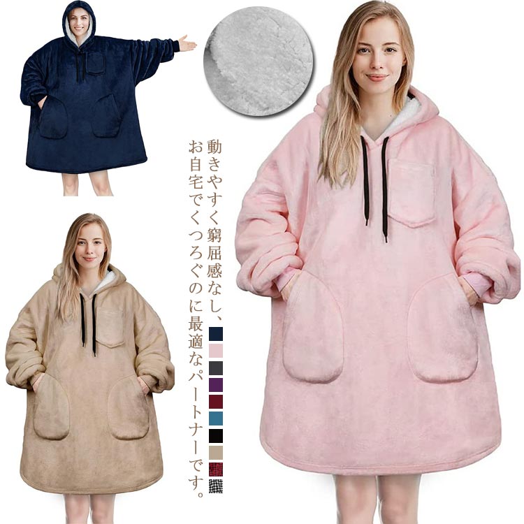 ■ブランケット パーカー レディース 寝巻き ルームウェア 大人用 着る毛布 もこもこ 防寒 ポケット付き 部屋着 保温 お洒落 暖かい オーバ