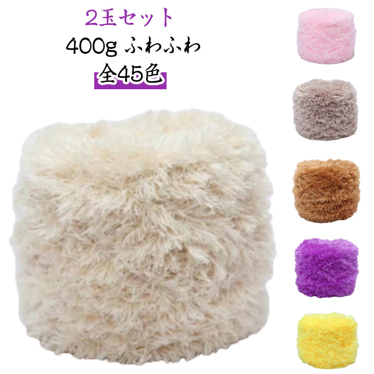 ■糸 ヤーン 2玉セット ニット 400g ふわふわ 毛糸 ニットヤーン 手芸 極太毛糸 編み物 超極太毛糸 フェイクファー 太い ブランケット 全45
