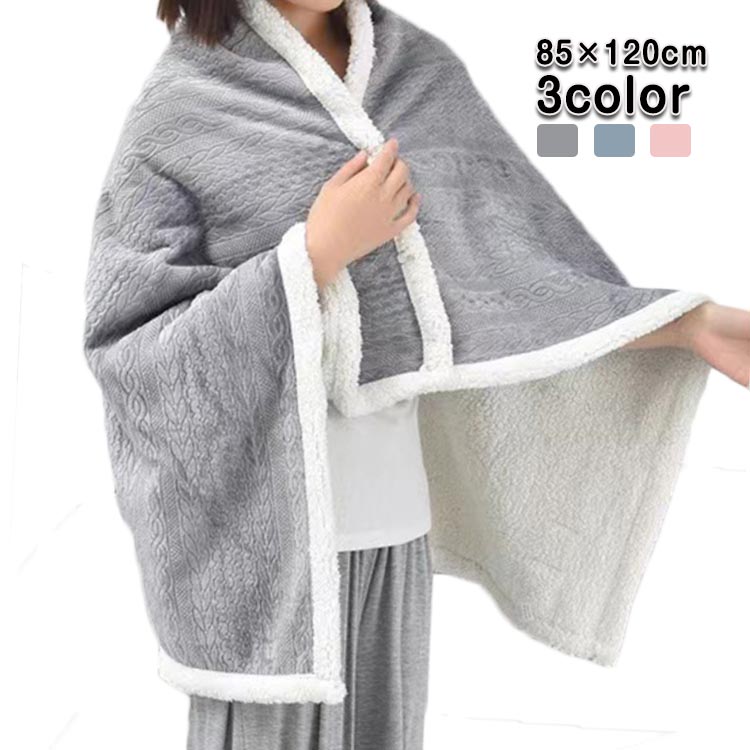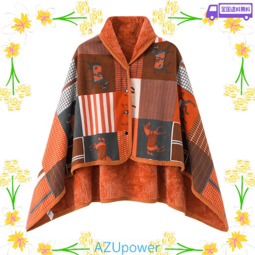 ■ブランケット 大判 おしゃれ ひざ掛け ポンチョ 85×120cm 冬 着る毛布 かわいい 裏ボア 厚手 ボタン付き 腰巻き 洗える 暖かい 送料無