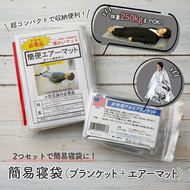 ■非常用 ブランケット 簡便エアーマット 2点セット 防寒 備蓄 災害 台風 防災 防災グッズ 簡易寝袋 防寒グッズ アウトドア キャンプ