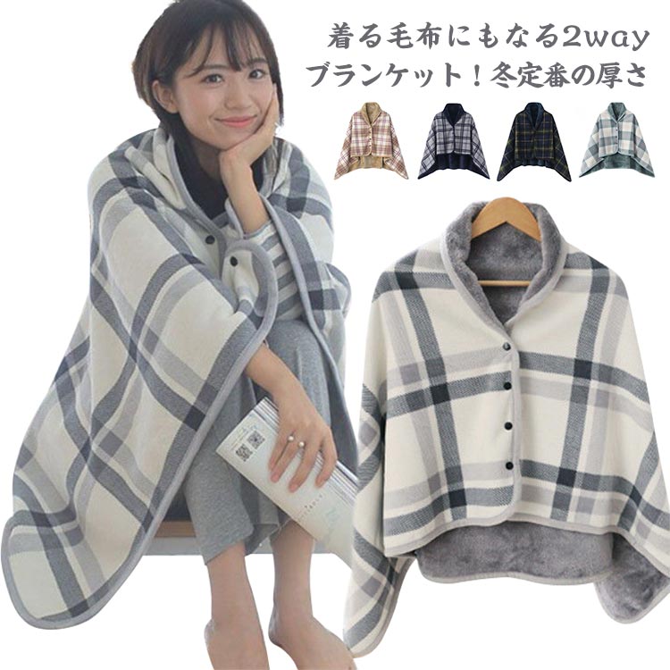 ■送料無料 ブランケット ひざ掛け 着る毛布 ボタン付き 着るブランケット 肩掛け 肩当て 膝掛け 肩あて ポンチョ 洗える 昼寝 もこもこ 裏