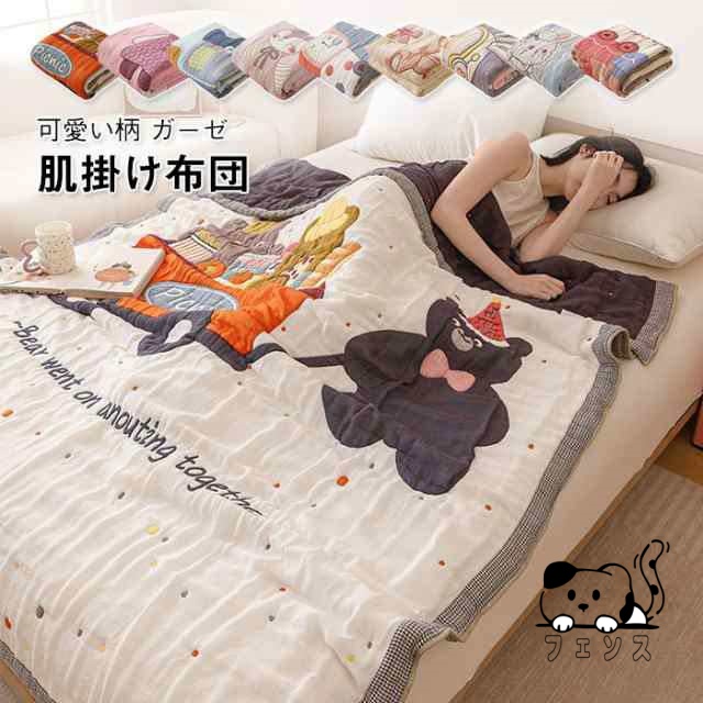 肌掛け布団 可愛い柄 高級 ガーゼケート ブランケット ふんわり 軽量 心地よい 爽やか 通気性 吸湿性 洗える 綿 コットン ポリエステル 柔らかい 子供 春 夏 秋 北欧 肌掛け 寝具 オールシーズン 150?200cm 2025新作