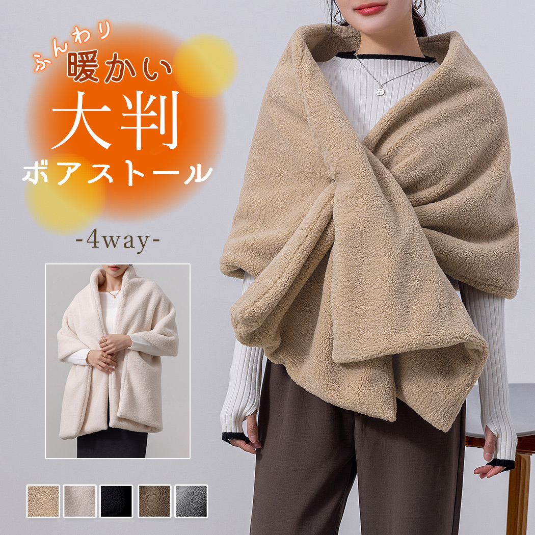 ■ボア ストール 大判 ショール レディース 羽織 アウター ブランケット ふんわり 巻くだけ ボアマフラー 防寒 防風 暖かい あったか 4way