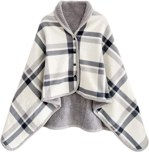 ■[LEAFIN] ひざ掛け ブランケット ハーフケット 春 冬 大判 4WAY 着る毛布 肩掛け ボタン付き 厚手 防寒対策 あったか チェック柄 おしゃ