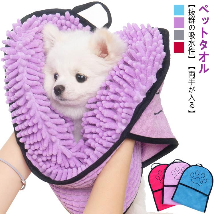■ドライヤータオル 速乾性 ペット用 犬猫用 バスタオル タオルケット 厚手 手入れポケット 超吸水 体拭き ふわふわ マイクロファイバー 洗