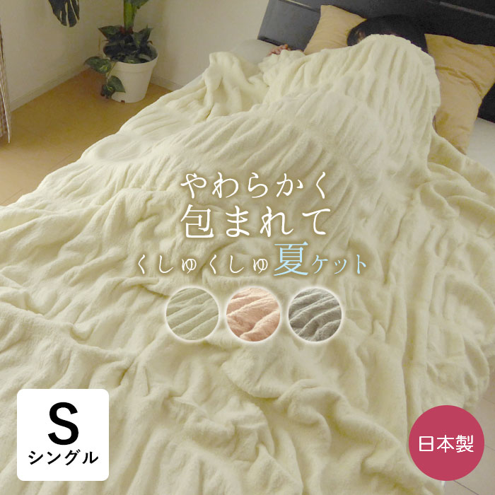 ■日本製 夏 くしゅくしゅ コットンケット シングル 140×200cm 軽量毛布 綿 ふんわり やわらか タオルケット 夏の冷房対策 FM3501