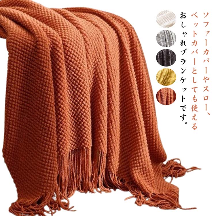 フリンジ付きブランケット 北欧 大判マルチカバー 新生活 SNS話題で着る毛布 ブランケット おしゃれ タオルケット アイボリー ニット冷房対策 スローケットフリンジ ベッドカバー オールシーズン インテリア ソファーカバー ひざ掛け 母の日/父の日 ギフト