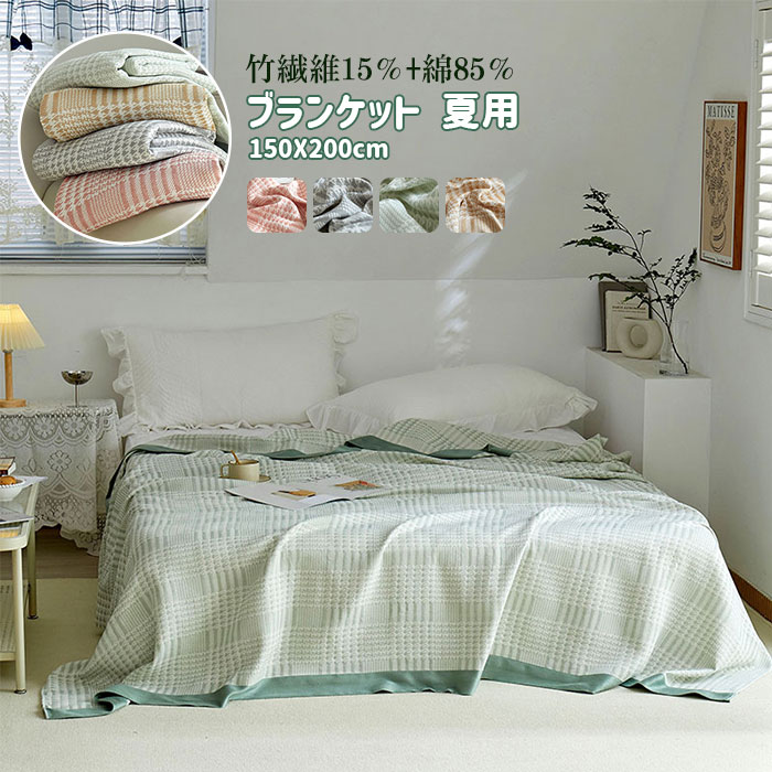 ■ガーゼケット ブランケット シングル 掛け毛布 もうふ タオルケット 大判 綿 竹繊維 天然素材 千鳥柄 夏布団 柔らい 肌掛布団 薄手 通気